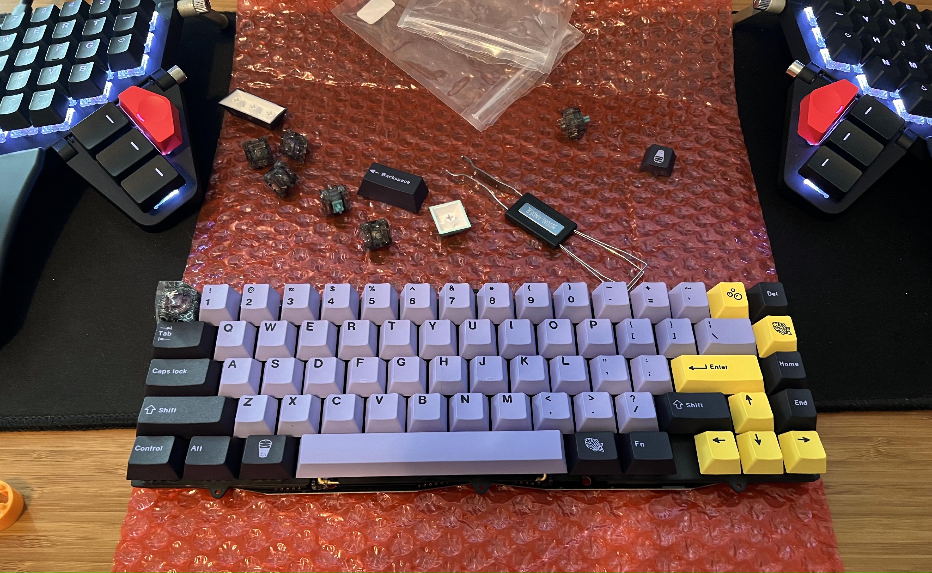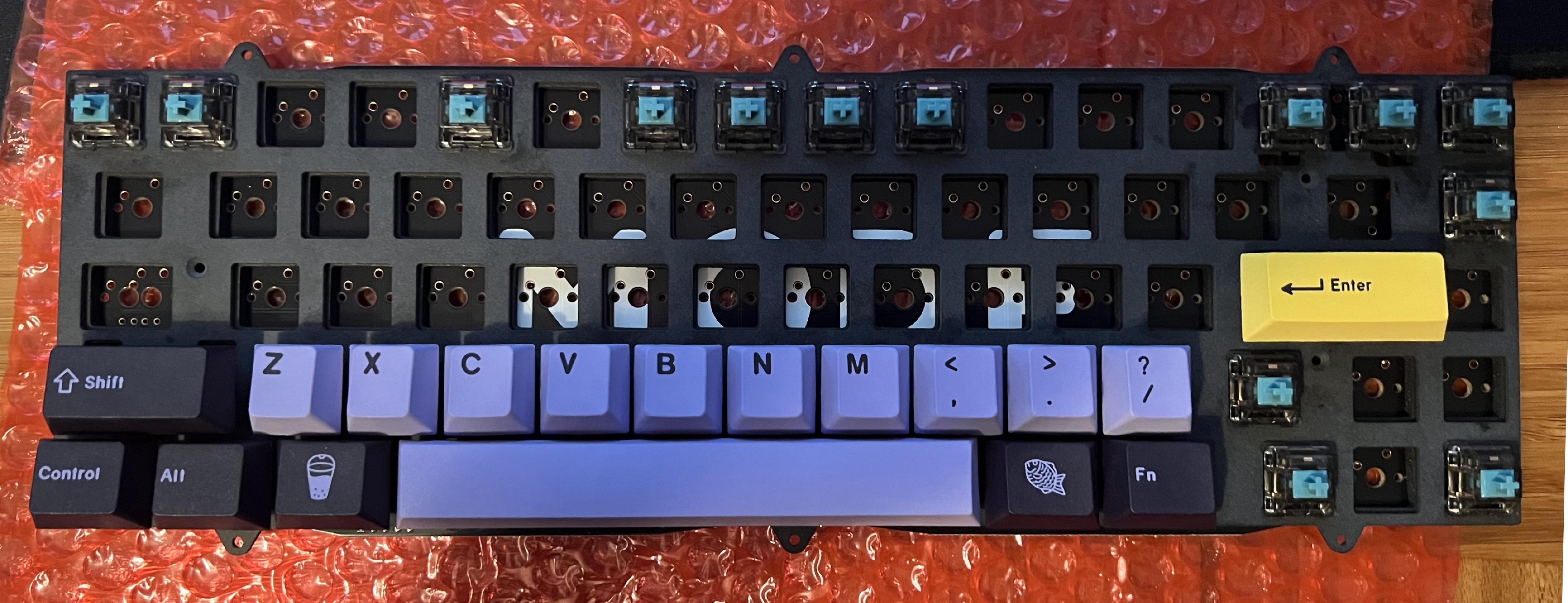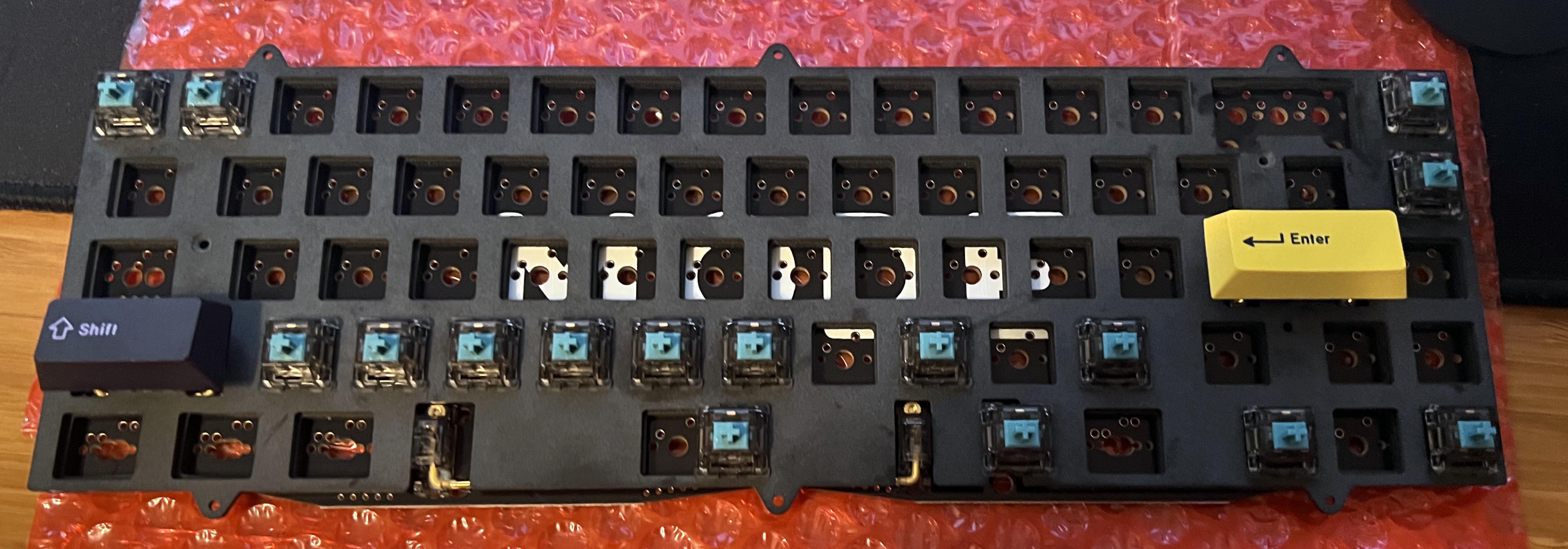 Mode 65 Jason Raimondi hardware hardware Published: March 24, 2022 PCB top PCB bottom Testing space bar stabilizers with foam and plate PCB with switches Begin soldering switches to PCB PCB with num keys and bottom two rows PCB with num keys and bottom two rows PCB with full keys soldered Bottom view of all the soldered switches Mounted PCB in case upside down, for stack mount Top view of keyboard Second up close view Bottom mirror Top detailed view Mode65 Closeup of artisan space man keycap Final top view with coiled usb cable Related Posts Can I Poop?